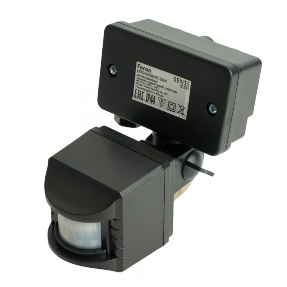 Датчик движения и освещенности FERON SEN15 инфракрасный, накладной, IP44, 230V, 1200W, расстояние обнаружения 10м, угол обнаружения 120°, с регулировкой освещенности и времени задержки, цвет черный, 70*120*100мм