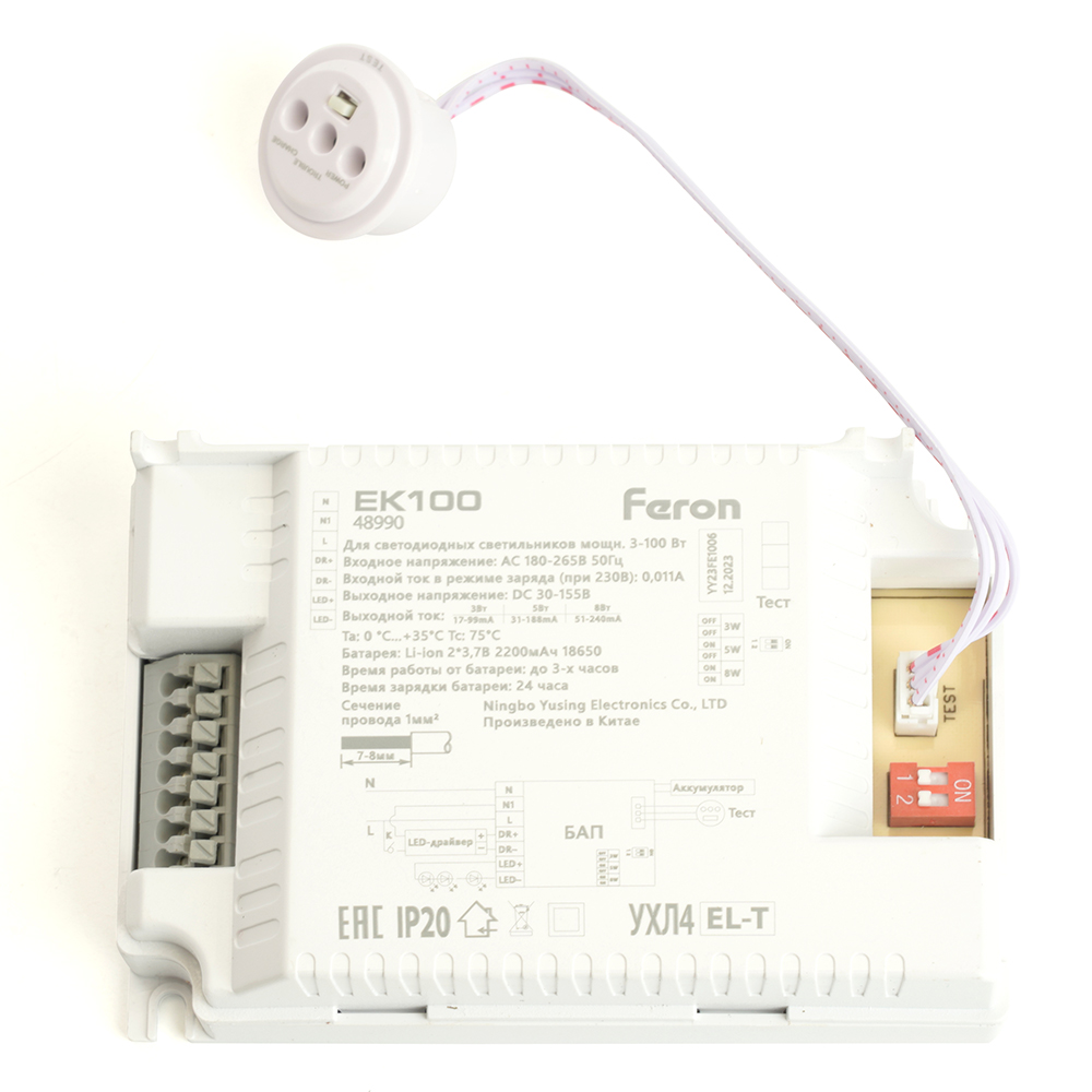Блок аварийного питания для светильников Feron EK100 до 100W подключение "в разрыв" АКБ внутри корпуса