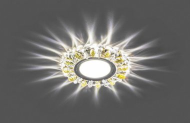 Светильник потолочный встраиваемый (ИВО) FERON CD914, под лампу с LED подсветкой 15LED*2835 SMD 4000K, MR16 G5.3, прозрачный-жёлтый хром, круг, 115*115*25 мм, монтажн.отв. 65мм, корпус полимер, неповоротный
