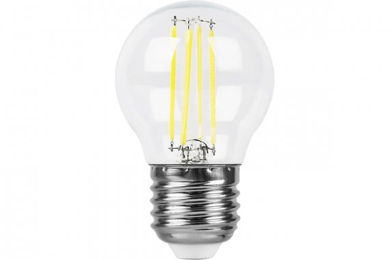 Лампа светодиодная филамент FERON LB-52, G45 (шар малый), 7W 230V E27 6400К (дневной), рассеиватель прозрачный 780Lm, угол рассеивания 270°, 75*45мм