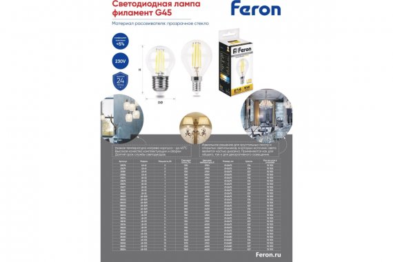 Feron 38223 Лампа светодиодная филамент LB-509, G45 (шар малый), 9W 230V E14