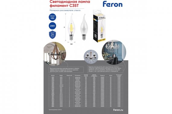 Технические характеристики FERON LB-67 Свеча на ветру E14 7W 6400K 38233