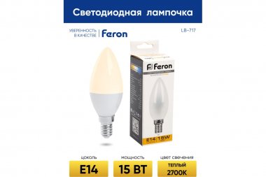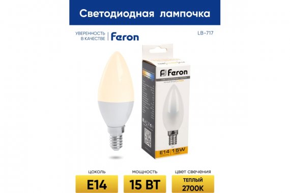 Технические характеристики FERON lb-717 свеча e14 15w 2700k 38255