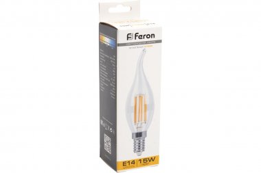 Feron 38261 Лампа светодиодная филамент LB-718, C35T (свеча на ветру), 15W 230V E14 2700К
