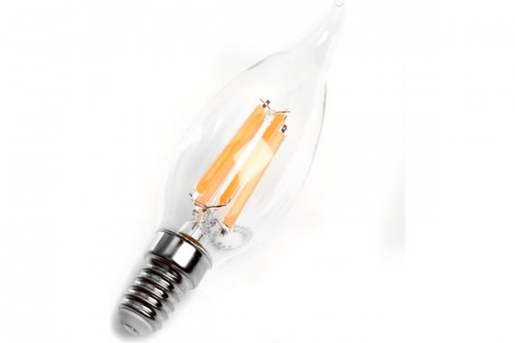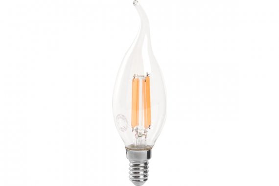 Лампа светодиодная филамент FERON LB-718, C35T (свеча на ветру), 15W 230V E14 2700К (белый теплый), рассеиватель прозрачный 1270Lm, угол рассеивания 270°, 121*35мм