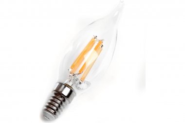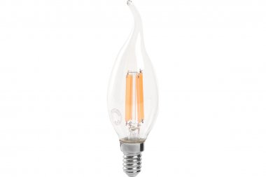 Лампа светодиодная филамент FERON LB-718, C35T (свеча на ветру), 15W 230V E14 4000К (белый), рассеиватель прозрачный 1320Lm, угол рассеивания 270°, 121*35мм