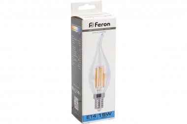 Feron 38264 Лампа светодиодная филамент LB-718, C35T (свеча на ветру), 15W 230V E14 6400К