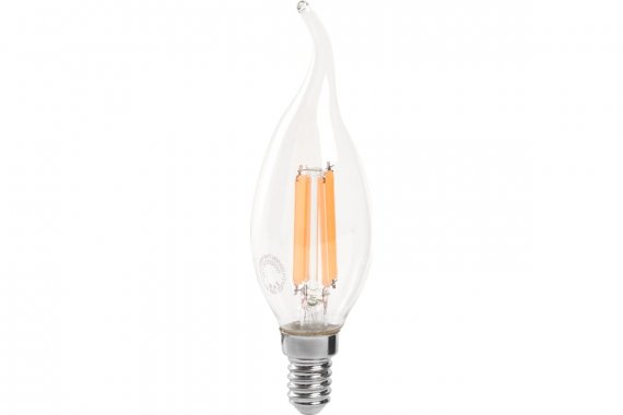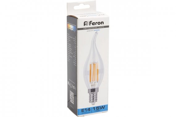 Лампа светодиодная филамент FERON LB-718, C35T (свеча на ветру), 15W 230V E14 6400К (дневной), рассеиватель прозрачный 1340Lm, угол рассеивания 270°, 121*35мм