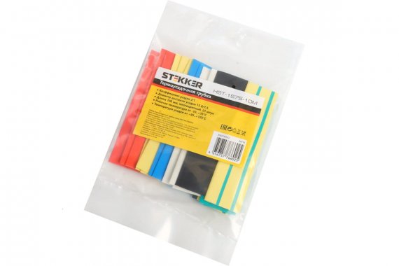 Термоусадочные трубки STEKKER HST-1575-10M, длина 100мм. 21шт. в наборе, цвет: многоцветный . Коэффициент усадки 2:1, диапазон рабочих температур -10..+35°C, температура усадки +85..+125°C, номинальный ток 32А, для проводов сечением мм2.