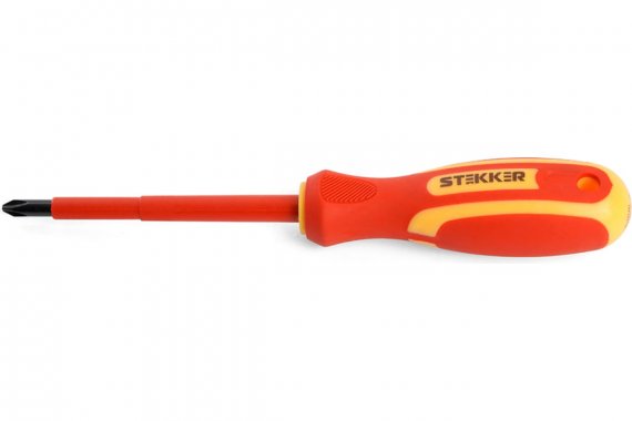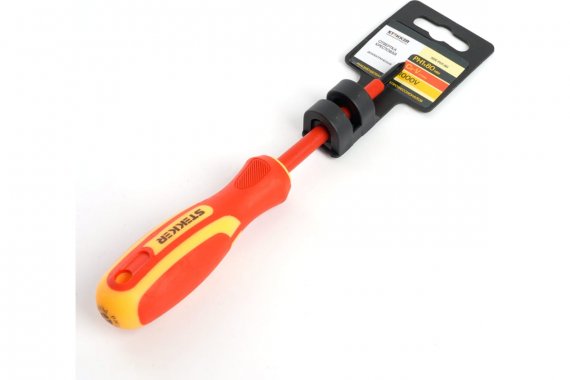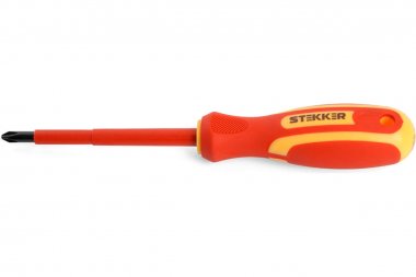 SDE-PH1-80 Отвертка крестовая диэлектрическая Ph 1 х 80 мм - форма шлица Ph, номер по размерному ряду 1, длина жала 80 мм. Выполнены из высокоуглеродистой стали, намагниченный наконечник. Диэлектрические отвёртки предназначены для работы с электроустановками под электрическим напряжением до 1000 В. Изолированные инструменты предохраняют электрика от контакта с токоведущими частями. Изолирующее покрытие жала предотвращает случайное замыкание элементов с разными потенциалами. На металлический стержень отвёртки нанесен диэлектрический материал, который: - сохраняет прочность, изолирующие свойства в различных условиях; - не воспламеняется при нагреве или контакте с электрической дугой; - не сминается, крепко соединяется с металлом стержня, что исключает их взаимное продольное смещение или проворачивание при эксплуатации -рукоятки отвёрток сделаны из диэлектрического однокомпонентного или многокомпонентного пластика с противоударными свойствами. Наконечник PH (Phillips) – крестообразный, самовыталкивающийся.