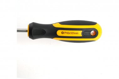 SDM-PH2-100 Отвертка крестовая Ph 2 х 100 мм, Cr-V двухкомпонентная рукоятка. Форма шлица Ph, номер по размерному ряду 2, длина жала 100 мм, намагниченный наконечник. Рукоятка из компонентов каучук и пластик. Компоненты металла - высокоуглеродистая сталь и хром-ванадиевая сталь. Хромованадиевые стали широко используются для производства слесарно-монтажного инструмента. Свое распространение этот сплав получил из-за приемлемой стоимости и оптимальных характеристик прочности и износостойкости. В ходе производства хромованадиевая сталь подвергается термообработке, в результате которой приобретает способность выдерживать ударные нагрузки. Наконечник PH (Phillips) – крестообразный, самовыталкивающийся из зацепления с крепежным изделием при значительном крутящем усилии.