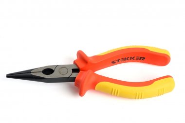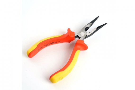 PLM2-160-P Длинногубцы диэлектрические, длина изделия 160мм. Инструмент с особо зауженными губками пирамидальной формы. Предназначены для захвата, манипулирования и перекусывания проволоки. Бывают без режущих кромок и с режущими кромками — для перекусывания проволоки средней твердости. Изолированные инструменты, как правило, предохраняют электрика от контакта с токоведущими частями. Изолирующее покрытие инструментов предотвращает случайное замыкание элементов с разными потенциалами. Компоненты металла - высокоуглеродистая сталь и хром-ванадиевая сталь. Инструмент имеет сертификат VDE, что отмечено на изделии -это система сертификации международного стандарта и соответствия качества, поддерживаемая Институтом сертификации и испытаний (PZI).Обязательное условие для получения одобрения «VDE» – это регулярное проведение испытаний. При этом проводятся тесты на разных стадиях изготовления продукции, а также испытывается конечный продукт.