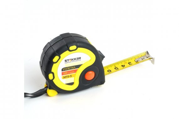 MTS-5 Рулетка, длина 5 м ширина 19 мм, прорезиненное покрытие корпуса, сантиметровое и милиметровое нанесение шкалы. Фиксация ленты. Измерительная рулетка – это специализированный измерительный инструмент, который предназначается для измерения линейных размеров длины, ширины, обхвата достаточно больших объектов, а также для проведения разметочных работ в различных помещениях и на открытом воздухе. Изготовлена из нержавеющей стали, зацеп ленты имеет ход 2 мм, который позволяет получать правильные результаты при измерении как с зацепом, так и без.