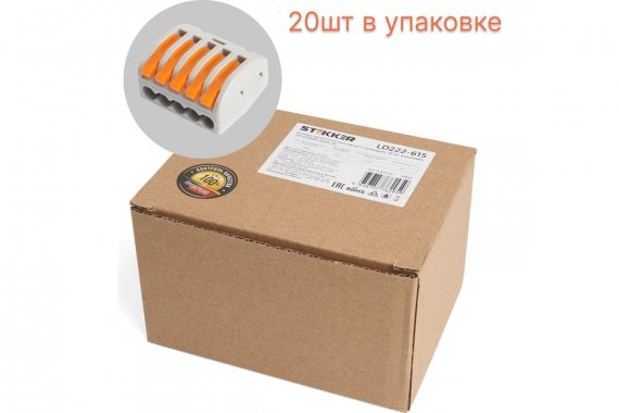 Клемма пружинная универсальная STEKKER LD222-615, 5-проводная 0,5-6 мм2, 450В, 41А, без пасты, материал изделия пластик, латунь. Тип провода одножильный/многожильный, материал провода медь, температура окружающей среды -20...+40°C