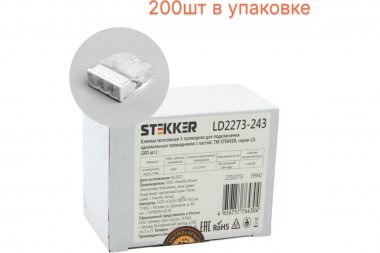 Клемма пружинная компактная STEKKER LD2273-243, 3-проводная 0,5-2,5 мм2, 450В, 24A, с пастой, материал изделия поликарбонат, латунь, сталь. Тип провода одножильный, материал провода медь, температура окружающей среды -20...+40°C