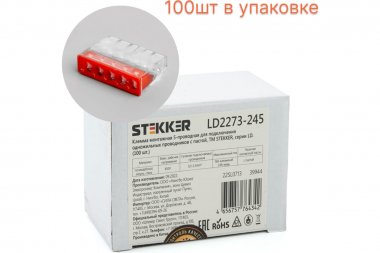 Клемма пружинная компактная STEKKER LD2273-245 , 5-проводная 0,5-2,5 мм2, 450В, 24A, с пастой, материал изделия поликарбонат, латунь, сталь. Тип провода одножильный, материал провода медь, температура окружающей среды -20...+40°C