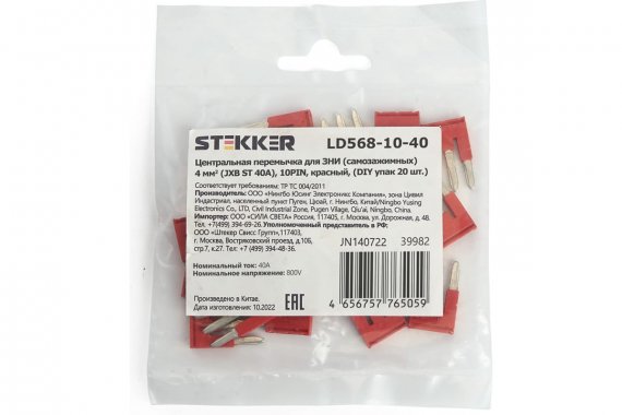 Технические характеристики STEKKER LD568-10-40 4 мм2 (JXB ST 4) 10PIN 39982