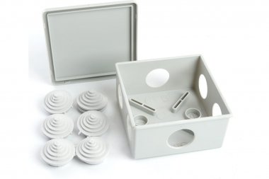 Распределительная коробка STEKKER EBX10-34-44, количество вводов: 6, полистирол, цвет светло-серый, размер 85*85*40мм.