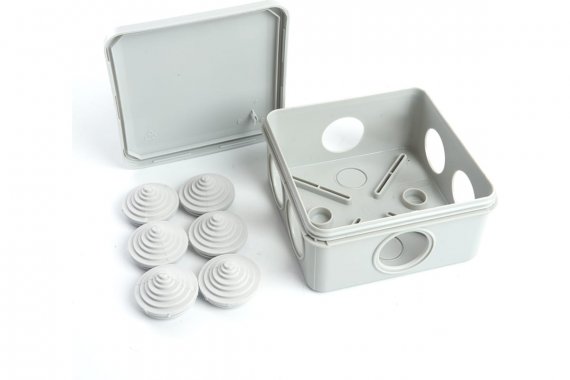Распределительная коробка STEKKER EBX10-36-55, количество вводов: 6, полистирол, полипропилен, цвет светло-серый, размер 100*100*50мм.