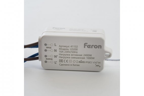Дистанционный выключатель для светильников (дистанционный выключатель), FERON LD200 , IP20, 230V, 1000W цвет белый, 65*23*32мм