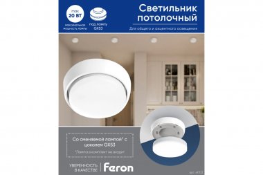 Накладной светильник для натяжных потолков Feron HL63 GX53 белый матовый, 41703 предназначен для общего и декоративного освещения жилых и общественных помещений, подсветки полок и ниш, и пр. ). Подходит для использования внутри помещений. Устанавливается на поверхности из нормально воспламеняемого материала.