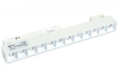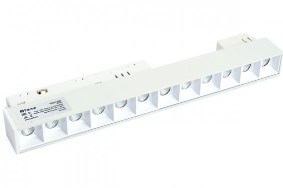 Светильник трековый на шинопровод, - (ДПО) FERON MGN300, 12W, 4000К (белый), 48V, 1080Lm, цвет белый, корпус алюминий, рассеиватель поликарбонат, 220*22*43 мм