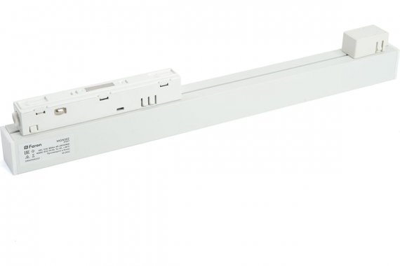 Светильник трековый на шинопровод, - (ДПО) FERON MGN302, 12W, 4000К (белый), 48V, 960Lm, цвет белый, корпус алюминий, рассеиватель поликарбонат, 300*22*43 мм