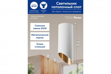 Светильник накладной под лампу, спот (ИПО) FERON ML181, GU10 35W, 230V, IP20, цвет белый, корпус металл, 55*55*130
