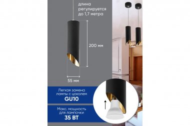Технические характеристики FERON ML1828 на подвесе MR16 35W 230V, черный, золото 55x200 48043