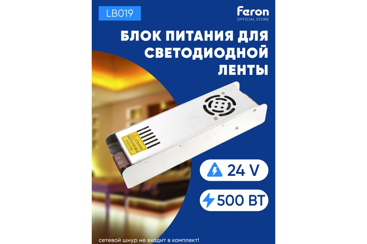 Технические характеристики FERON LB019 500W 24V (драйвер) 48049