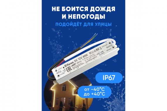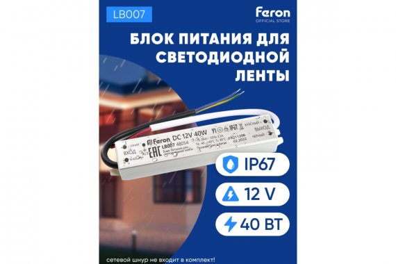 Технические характеристики FERON LB007 40W 12V IP67 (драйвер) 48054