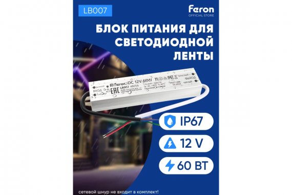 Технические характеристики FERON LB007 60W 12V IP67 (драйвер) 48056