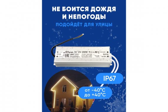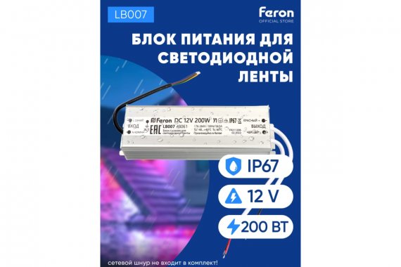 Технические характеристики FERON LB007 200W 12V IP67 (драйвер) 48061