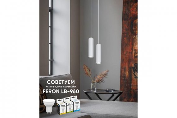 Светильник накладной под лампу, спот (ИПО) FERON ML1768, GU10 35W, 230V, IP20, цвет белый, корпус алюминий, 55*55*200