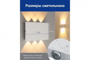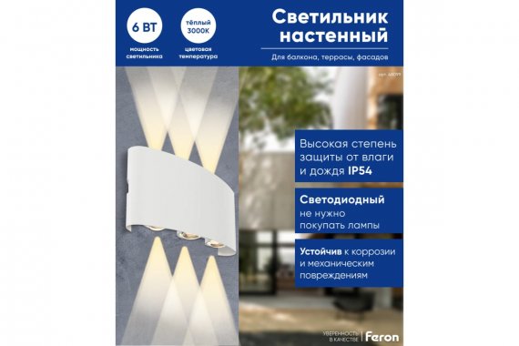 Светильник уличный светодиодный, на стену (ДБУ) FERON DH101, серия Нью-Йорк, 6W, 3000К (белый натуральный), 230V/50Гц, 450Lm, IP54, 6LED*SMD, класс защиты 1, раб.t -40°C...+40°C, цвет белый, корпус алюминий, 170*40*80мм,