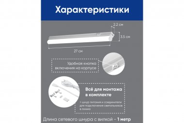 Светильники можно соединять в линию до 100Вт транзитно. В комплекте со светильником идут крепеж, кабель подключения 1м с вилком, гибкий коннектор, жесткий коннектор "стык-в-стык", заглушка.