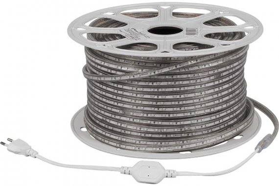 Лента светодиодная 220V FERON LS704, 60*SMD2835, 4,4W/m, IP65, 4000К (нейтральный белый), в комплекте 2 сетевых шнура, 2 заглушки, 2 коннектора, 10 крепежей , Кратность резки мм 1000мм, раб.t -40°C...+40°C, бобина 100 метров*13мм*7 мм