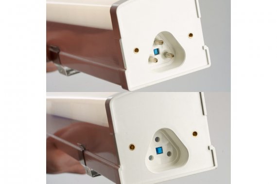 В своей конструкции модель имеет кнопку «Тест» и индикатор. Кнопка предназначена для проверки состояния осветительного прибора, БАП и подключенной к ней батареи. Зеленый индикатор сигнализирует о наличии сетевого питания. Кнопка находится под крышкой в конечной части светильника. Также, светильник оборудован еще одной кнопкой, позволяющей принудительно отключить светильник при отключении сетевого питания. Кнопка расположена под коннектором в начальной части светильника.