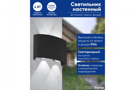 Feron 48311 Светильник уличный светодиодный, на стену (ДБУ) DH701, серия Нью-Йорк, 4*1W, 4000К