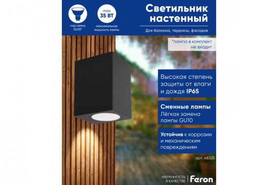 Технические характеристики FERON DH050 230V GU10 черный (на стену) 48325