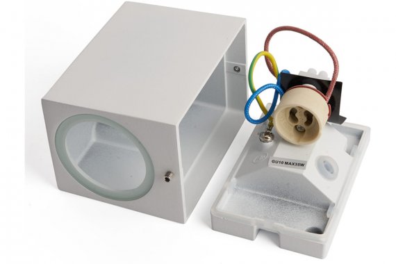Светильник садово-парковый, серии «Бостон», (ДБУ) FERON DH050 35W, GU10, 230V, IP65, цвет белый, прямоугольник, на стену , 78*68*100мм