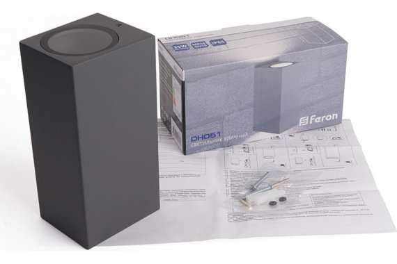 Светильник садово-парковый, серии «Бостон», (ДБУ) FERON DH051 35W, GU10, 230V, IP65, цвет серый, прямоугольник, на стену , 68*78*160мм