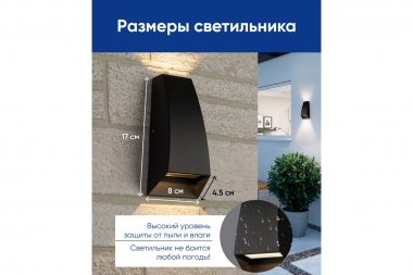 Светильник уличный светодиодный, на стену (ДБУ) FERON DH506, серия Дели, 6W, 4000К (белый натуральный), 230V/50Гц, 170Lm, IP54, 2LED*COB, класс защиты 1, раб.t -40°C...+40°C, цвет черный, корпус алюминий, 80*45*170мм,