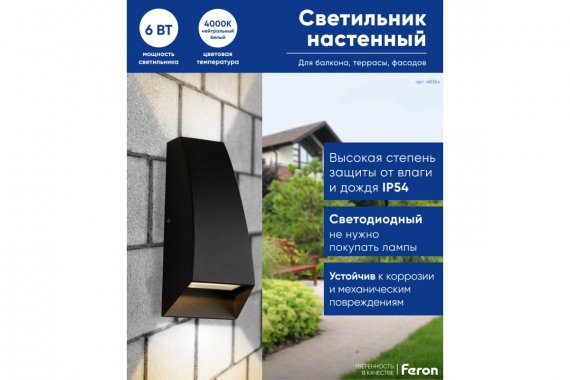 Feron 48364 Светильник уличный светодиодный, на стену (ДБУ) DH506, серия Дели, 6W, 4000К