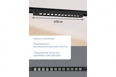 Светильник трековый на шинопровод, однофазный (ДПО) FERON AL130, 30W, 4000К (белый), 170-265V, 2700Lm, цвет черный, корпус алюминий, рассеиватель пластик, вращение ?0°/?0°, 478*33*41 мм