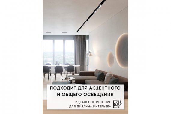- Перемещение светильника по всей длине шинопровода позволяет менять акценты освещения в зависимости от перестановок в интерьере