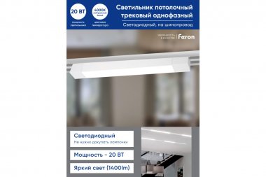 Feron 48379 Светильник трековый на шинопровод, однофазный (ДПО) AL132, 20W, 4000К