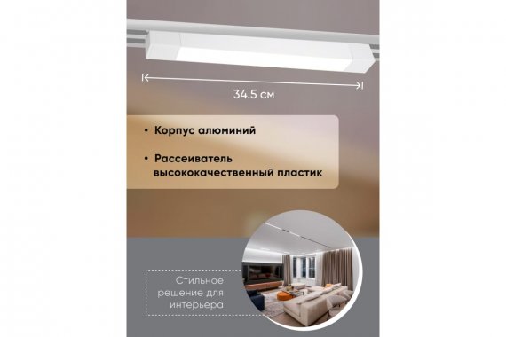 Светильник трековый на шинопровод, однофазный (ДПО) FERON AL132, 20W, 4000К (белый), 170-265V, 1400Lm, цвет белый, корпус алюминий, рассеиватель пластик, вращение ?0°/?0°, 345*33*41 мм