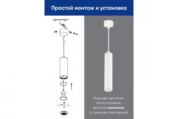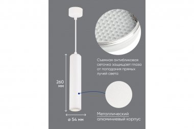 Технические характеристики FERON ml1842 barrel echo levitation mr16 35w, 230v, gu10, белый, с антибликовой сеточкой, на подвесе 1,7 м 48397