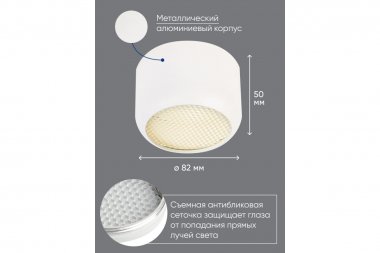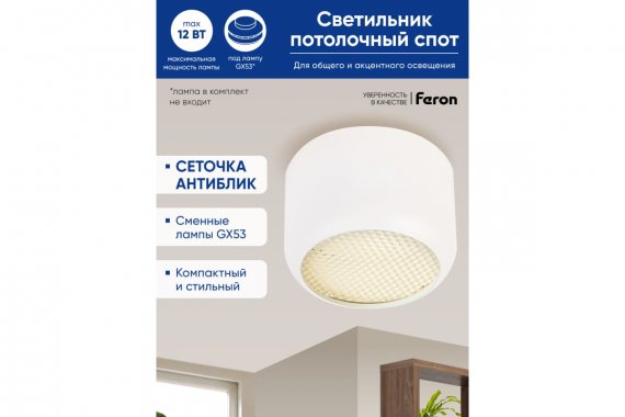 Технические характеристики FERON HL364 Barrel ECHO 12W, 230V, GX53, белый, с антибликовой сеточкой 48399